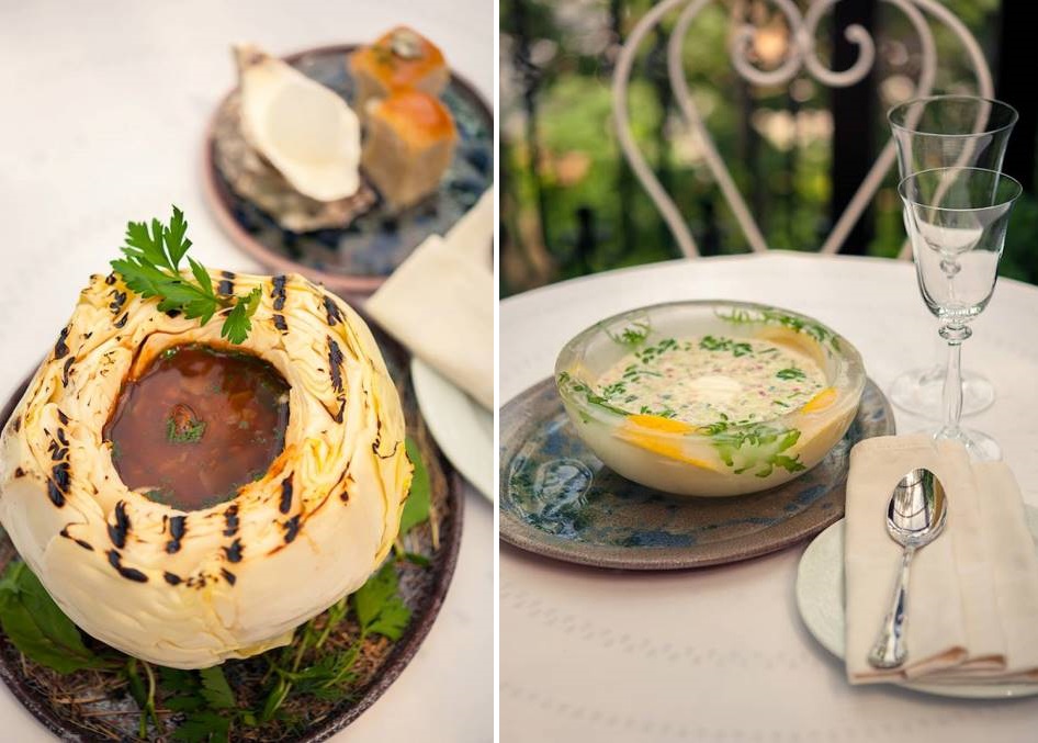 Заказали. Ждём, значит. Ждём, ждём… Выпили одну бутылку вина, заказали вторую. Пиво, которое здесь подают в пол-литровой банке, тоже распробовали. На контингент за столиками, уминающий борщ из кочана капусты и окрошку из ледяной тарелки (ледяная – это тоже в буквальном смысле, холодный суп здесь подают в куске льда), поглазели. Люди сюда ходят приличные – не то, что мы. В то время как все тихонько вели деловые переговоры или беседовали о смысле жизни, мы предавались веселью, обсуждая предстоящую поездку в Италию и похождения одной из подруг, которая недавно вернулась из Ниццы. Ну как предавались веселью – в рамках приличного, конечно. Хихикали весьма громко, в связи с чем обслуживающий нас мальчик окрестил “самыми весёлыми клиентами”. Правда, мы так и не поняли: “самыми” мы были именно в тот вечер или вообще за всю его жизнь. Официант, кстати, попался очень милый. Подливал вино именно тогда, когда нужно, шутил очень в тему и извинялся за то, что кухня так долго работает: “Вы же видите, у нас стопроцентная посадка” (народу и впрямь было битком – ни одного свободного стола).