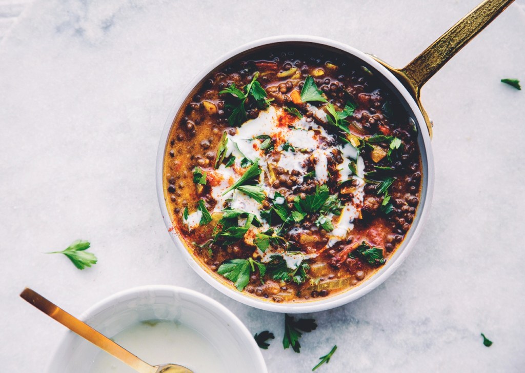 В глубокой сковороде обжариваем большую луковицу. Когда лук станет прозрачным, добавляем тёртую на крупную тёрку морковь, мелко порезанный болгарский перец и помидоры (помидоры предварительно обдать кипятком и снять с них шкурку). Туда же добавляем порезанную сырую тыкву и предварительно отваренную фасоль (можно брать тёмную – так блюдо будет выглядеть веселее). Солим, перчим, при желании добавляем чили/карри/тмин или други любимые специи. Подливаем немного бульона или воды, накрываем крышкой и тушим около часа на самом маленьком огне. Бульон и вода должны немного выпариться, а содержимое сковородки в идеале должно немного загустеть. При подаче можно добавить сметаны или нежирного йогурта. И да, если хотите рагу с мясом, добавляйте! На том этапе, что и тыкву:)