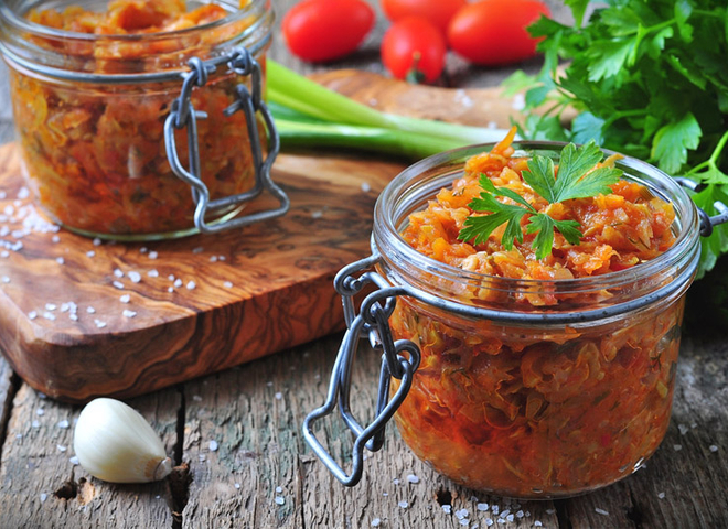 В принципе, вам ничего делать не придётся, кроме того, что порезать овощи, посолить-поперчить и нажать кнопку “старт” на перемалывающем агрегате. Икра сама готовится!