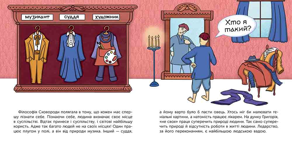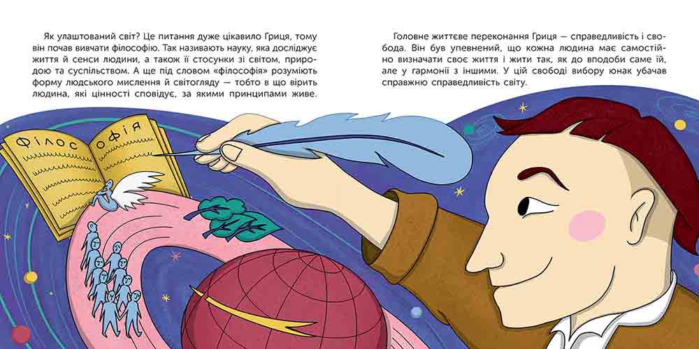 Філософ, поет, педагог і перекладач — це все про Григорія Сковороду. Народившись у звичайній селянській родині, він самотужки опанував майже десять іноземних мов. Це дало йому змогу читати зарубіжну літературу в оригіналі та спілкуватися з цікавими людьми з різних країн. Він був вільний духом і тілом, ніколи не сидів на одному місці, багато подорожував світом. Історія його життя захоплює і надихає. І ця книжка саме про це!