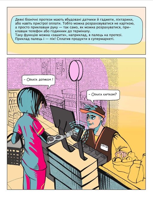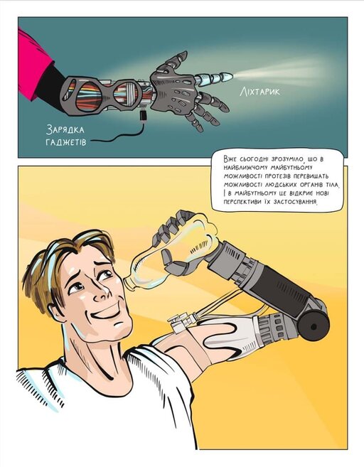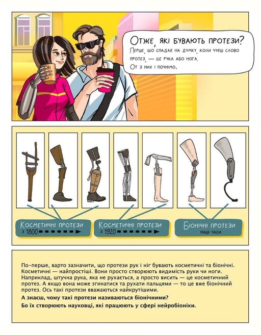 Видання розповідає підліткам історію протезування у світі — від найперших примітивних деревʼяних протезів і до сучасних біонічних девайсів. А також вчить інклюзії, емпатії та знайомить з реальними людьми, що не зламались після втрати кінцівок чи інших травм.